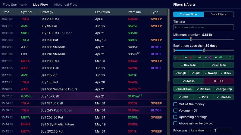 Visual options strategy builder, optimizer, and institutional flow analyzer